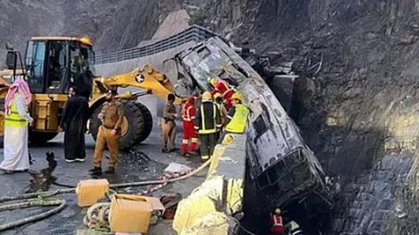 সৌদি আরবে ওমরা করতে গিয়ে বাস দুর্ঘটনায় এখন পর্যন্ত ১৩ বাংলাদেশির নিহত হওয়ার খবর নিশ্চিত হওয়া গেছে। এ ঘটনায় ১৭ বাংলাদেশিকে বিভিন্ন হাসপাতালে ভর্তি করা হয়েছে। বুধবার (২৯ মার্চ) পররাষ্ট্র