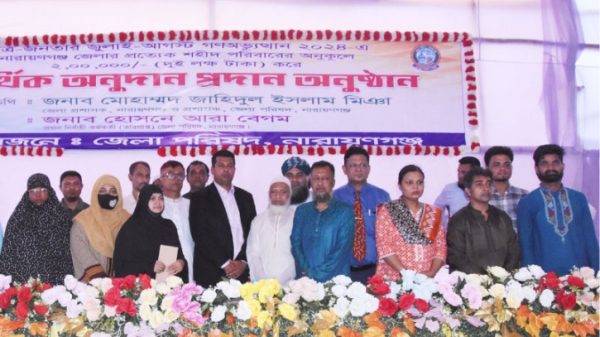 নারায়ণগঞ্জে ছাত্র জনতার গণঅভ্যুত্থানে শহীদ ২১ পরিবারকে ৪২ লাখ টাকা আর্থিক অনুদান দিয়েছে জেলা প্রশাসন। বুধবার (১৬ এপ্রিল) বিকেলে জেলা প্রশাসকের কার্যালয় প্রাঙ্গণে এক আনুষ্ঠানিক আয়োজনে শহীদ পরিবারের স্বজনদের হাতে